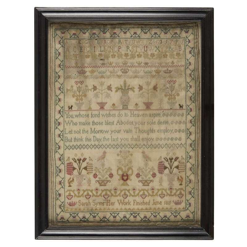An English needlework sampler "sarah syms her work finished june 1815"