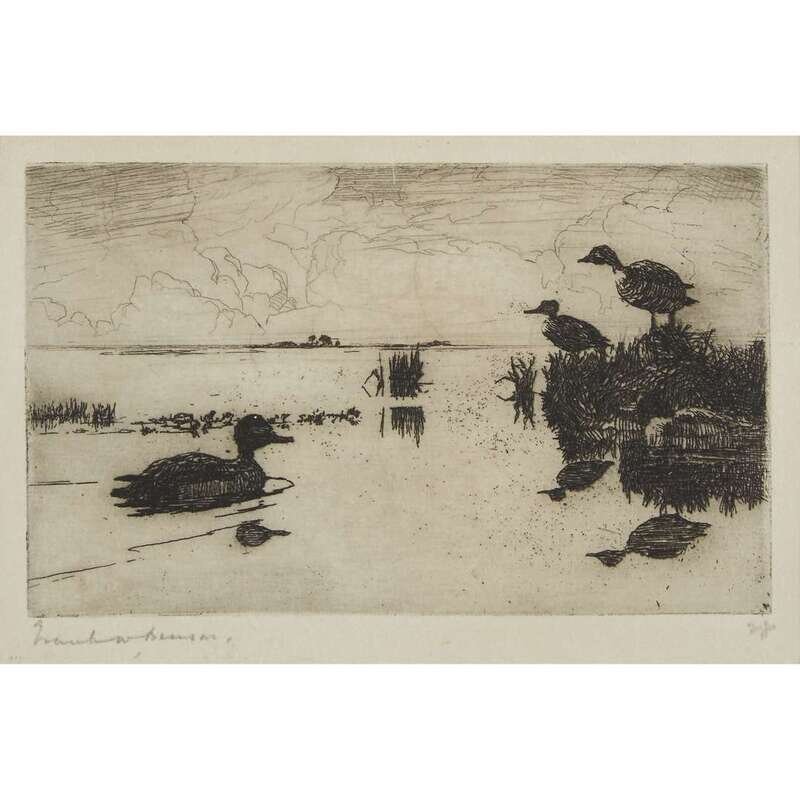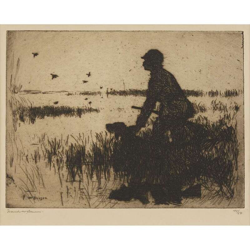 TWO PRINTSFRANK WESTON BENSON (AMERICAN 1862–1951) "THE VISITOR""THE DUCK HUNTER"