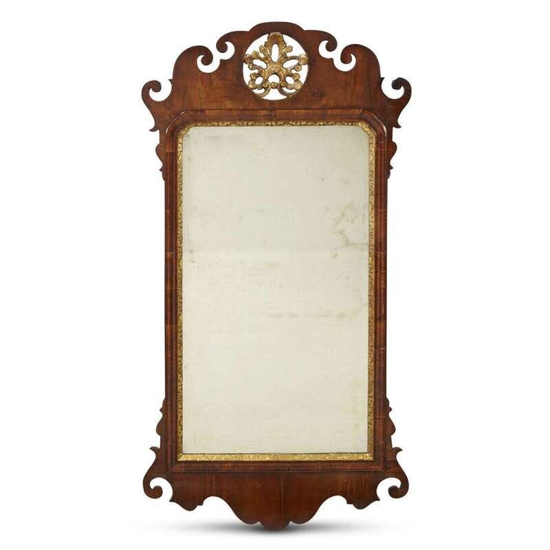 A Chippendale parcel-gilt and walnut fret-carved looking glass late 18th century
