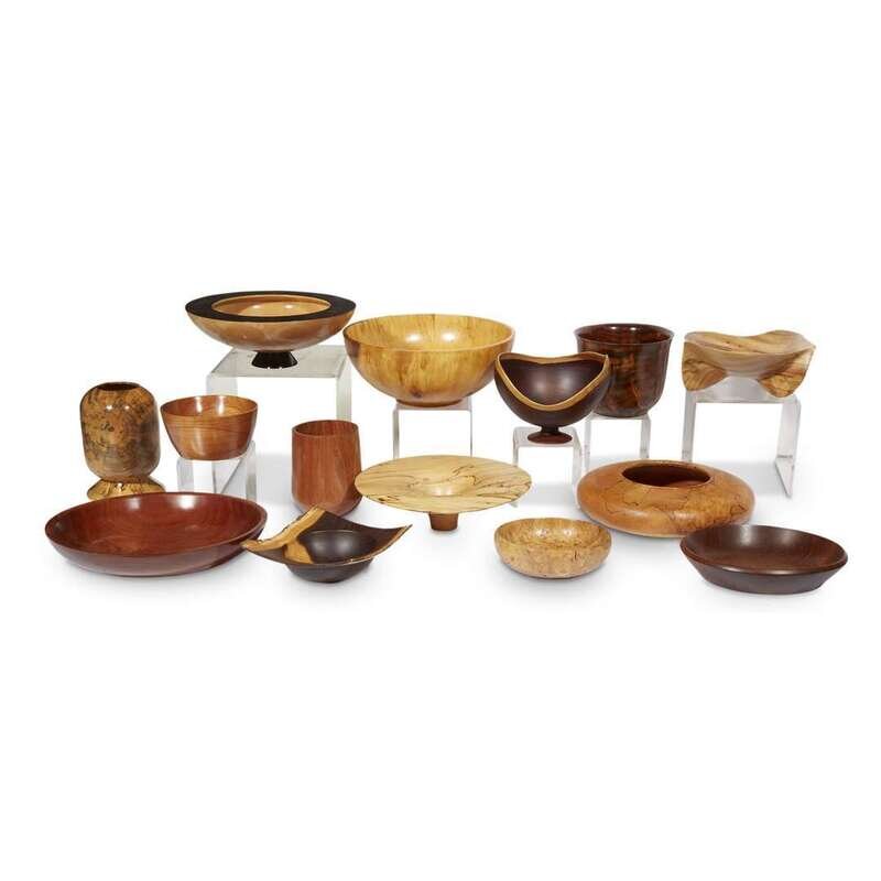A COLLECTION OF TURNED AND CARVED WOOD VESSELS AND BOWLS VARIOUS MAKERS