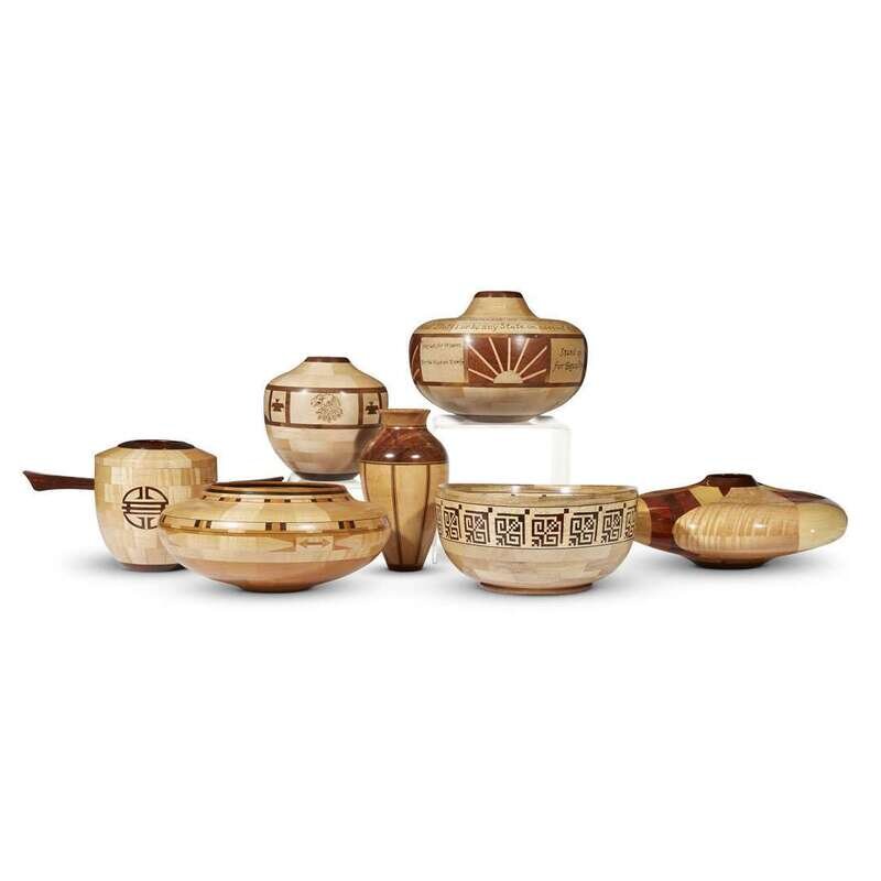 A COLLECTION OF TURNED AND CARVED VESSELS VARIOUS MAKERS