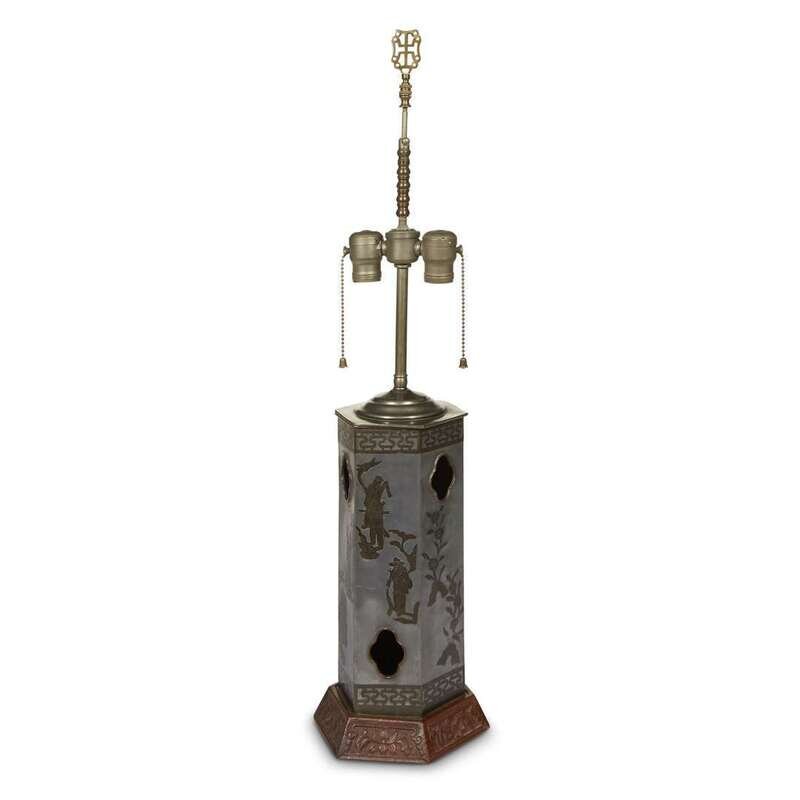 With pierced decoration of foliate blossoms; converted to a lamp.