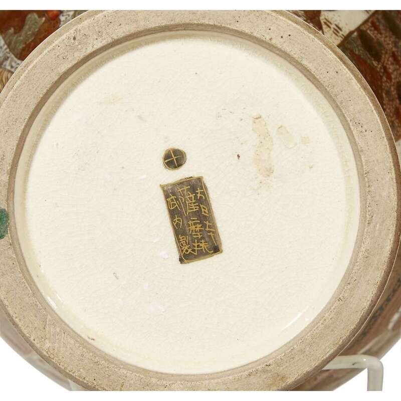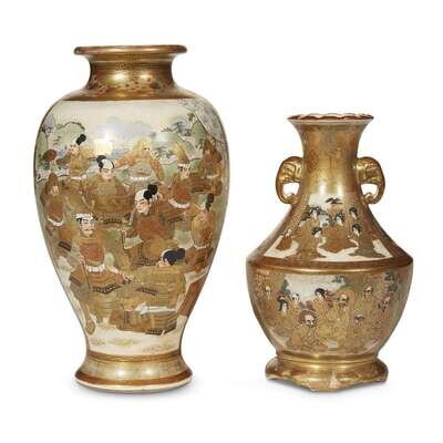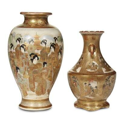 The first of oval form, the second, vasiform with elephant handles, shaped foot. Both signed on underside.