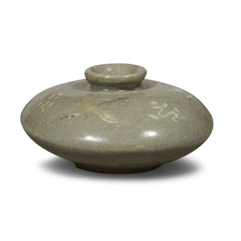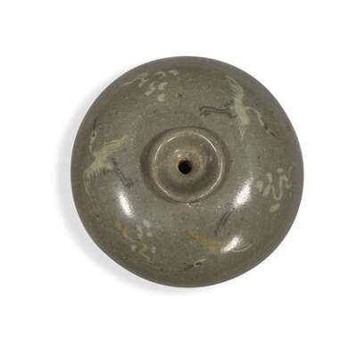 A Korean inlaid celadon small "Cranes" oil jar goryeo dynasty, 12th/13th century
