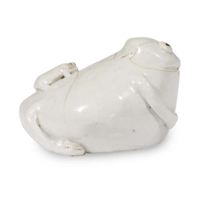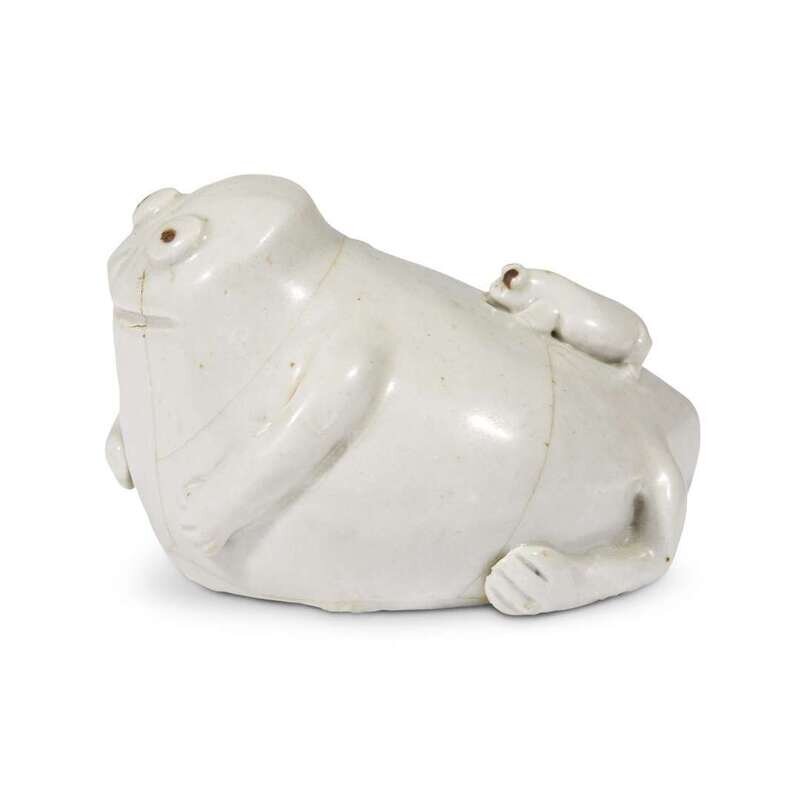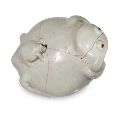 A Korean white-glazed porcelain "Double Frog"-form water dropper joseon dynasty, 19th century