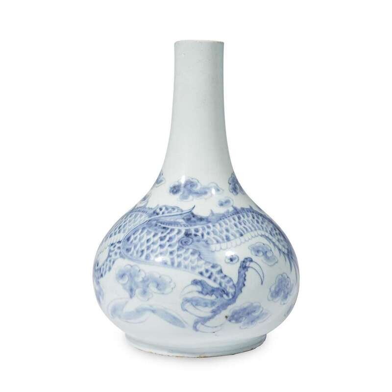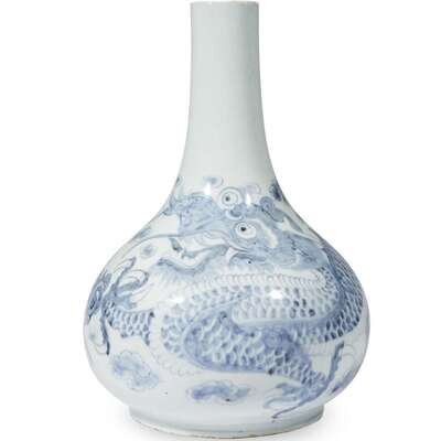 A Korean blue and white porcelain "Dragon" bottle vase joseon dynasty, 19th century
