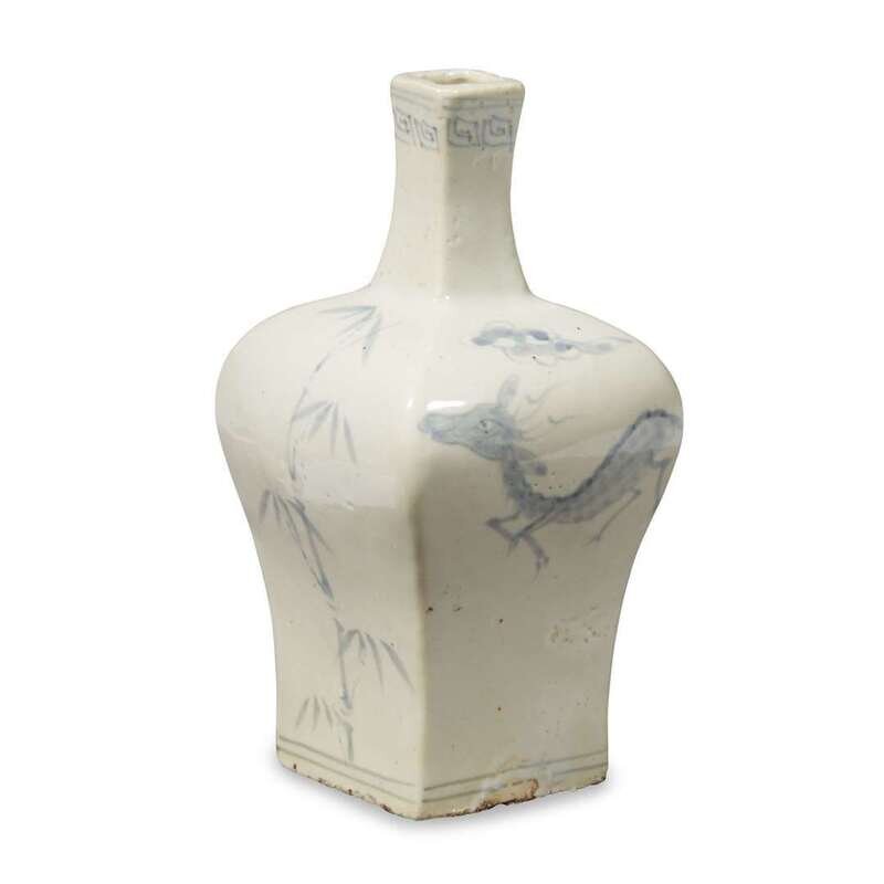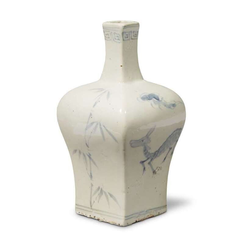 A Korean square "Deer and Bamboo" bottle vase joseon dynasty, 18th/19th century