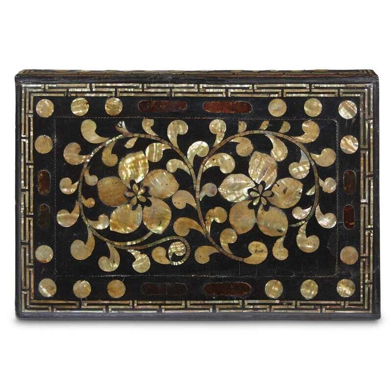 A Korean mother of pearl, tortoiseshell and wire-inlaid rectangular box and cover joseon dynasty, 18th century
