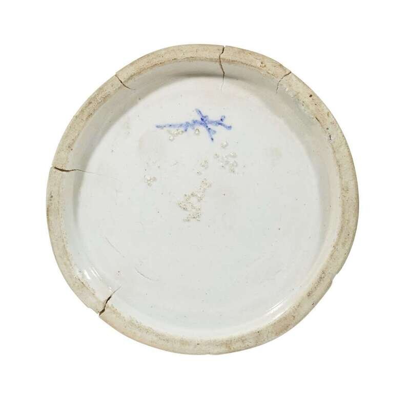 Of attenuated globular form with short slightly flared neck, resting on a raised ring foot, underside with inscribed mark.