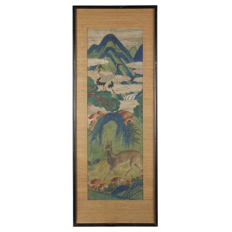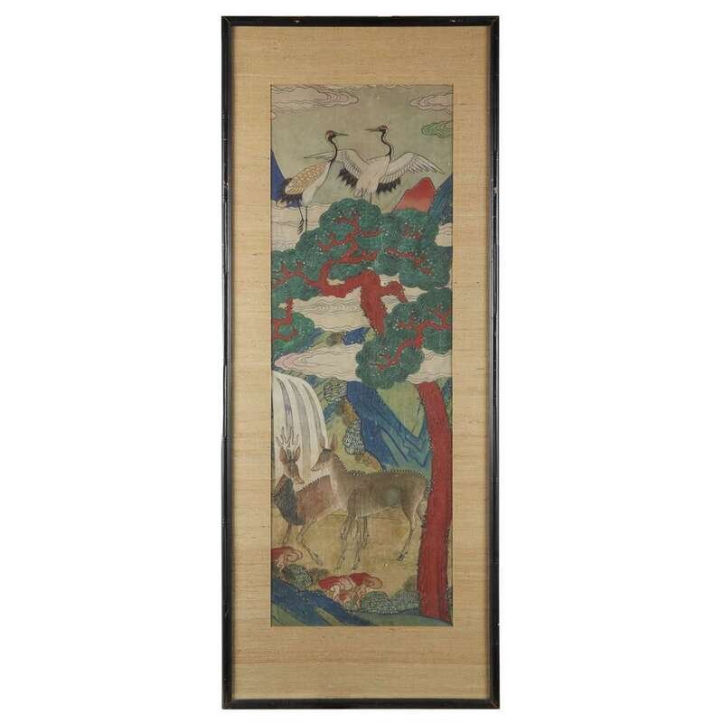 KOREAN SCHOOL 18TH/19TH CENTURY A PAIR OF PAINTINGS DEPICTING DEER AND CRANES