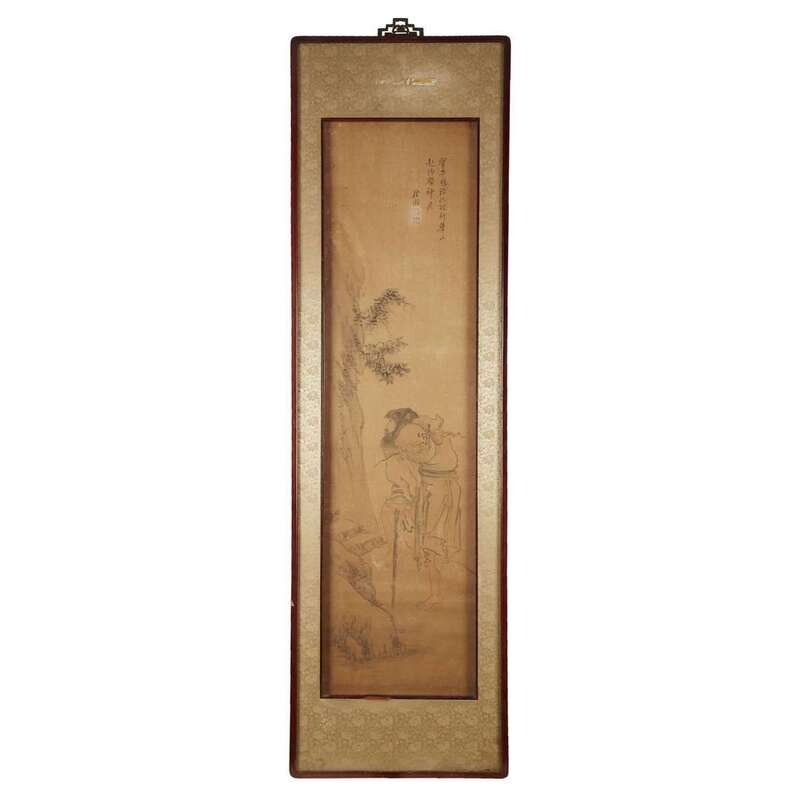 Ink on silk, attributed to Kim Hongdo, bearing signature and with two seals upper right, framed and glazed. Sight H. 52 in., 132.1 cm; W: 13 1/4 in., 33.6 cm