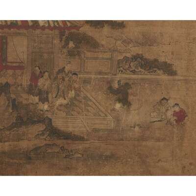 JAPANESE SCHOOL EDO PERIOD, POSSIBLY 17TH/18TH CENTURY CHINESE CHILDREN BEFORE A SAGE, AND A MAN GAZING ON TWO FISH