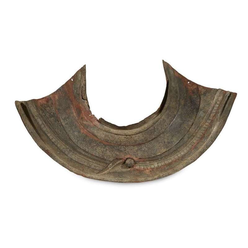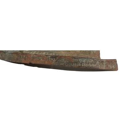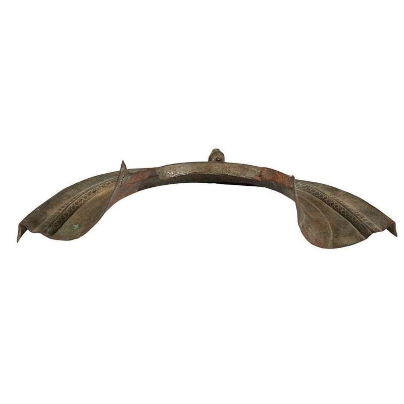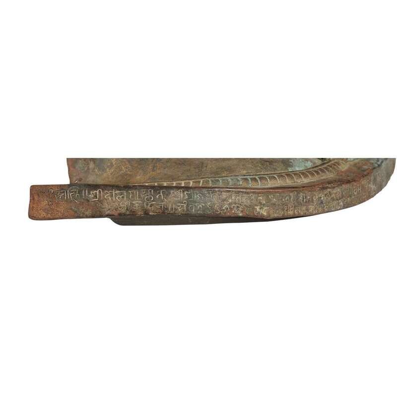 Possibly from a ligham cover, in the form of a neck with snake necklace, the edge engraved with Indian script.