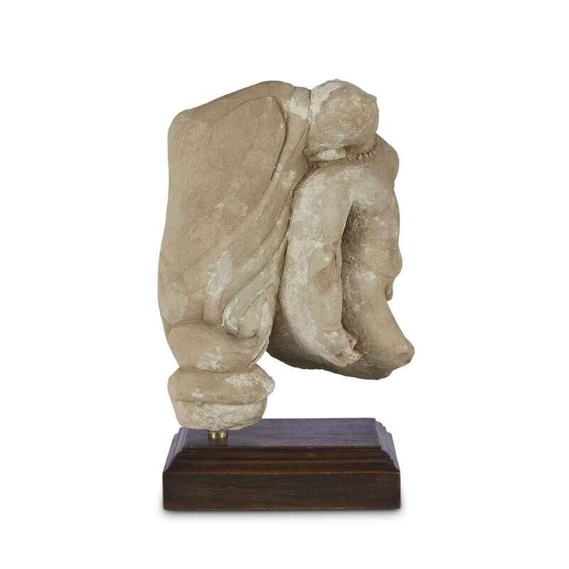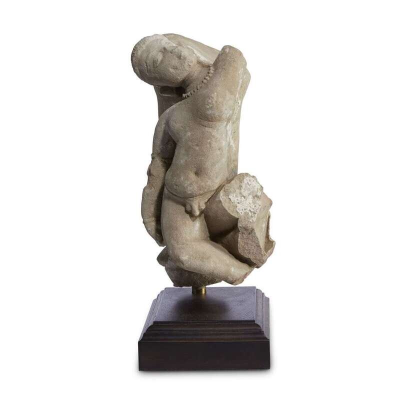 An Indian carved buff-toned pink sandstone figure of a dancing boy circa 12th-13th century