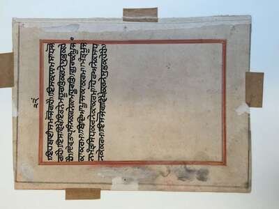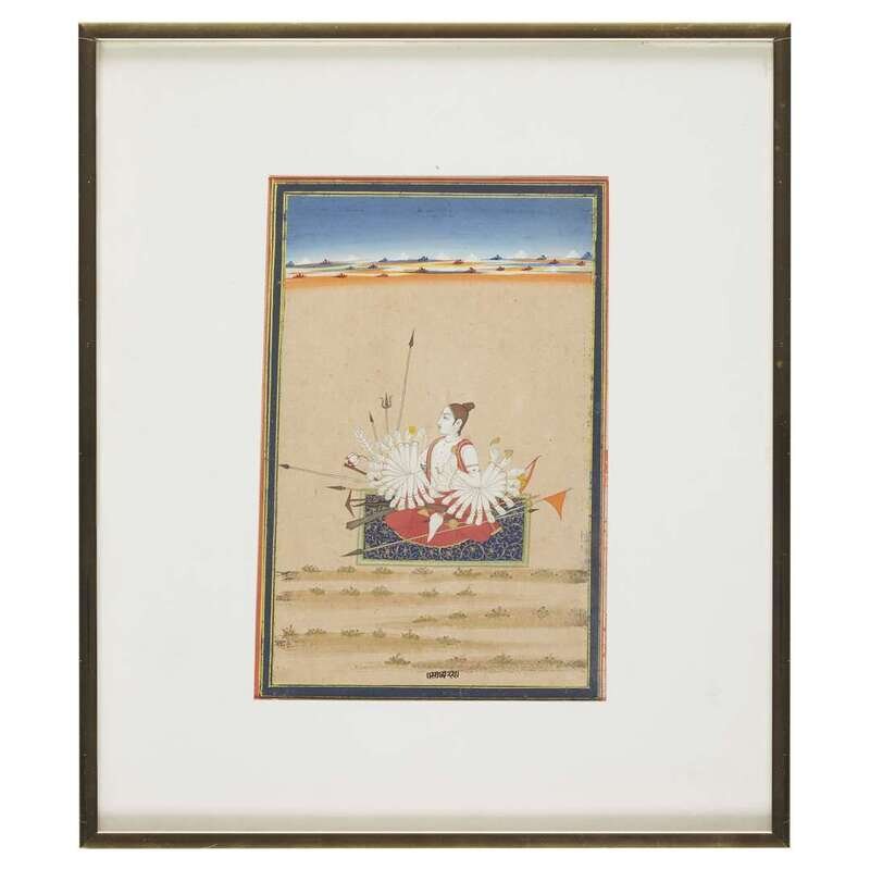 Opaque color with gold on paper The multi-armed figure personifying a period of the day, seated on a carpet in a spare landscape, inscribed lower center, framed, matted and glazed sight H: 9 in., 22.9cm; W: 6 in., 15.2 cm