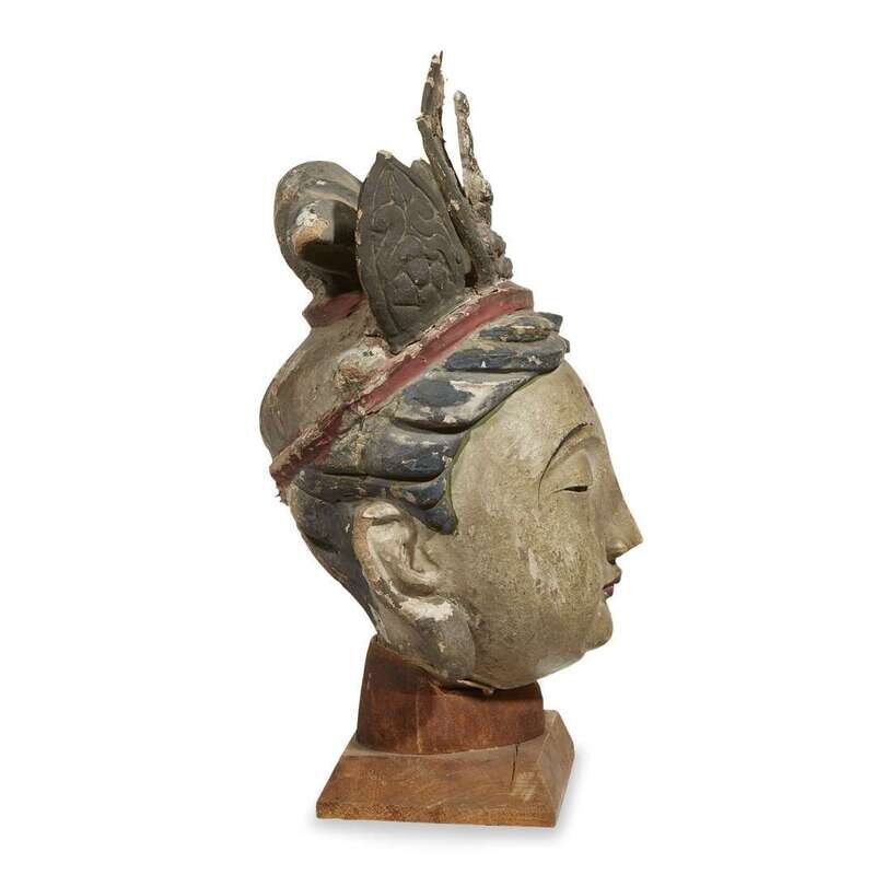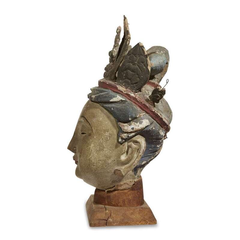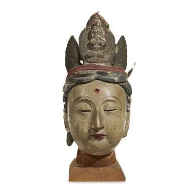 Chinese painted stucco head of Guanyin Ming dynasty