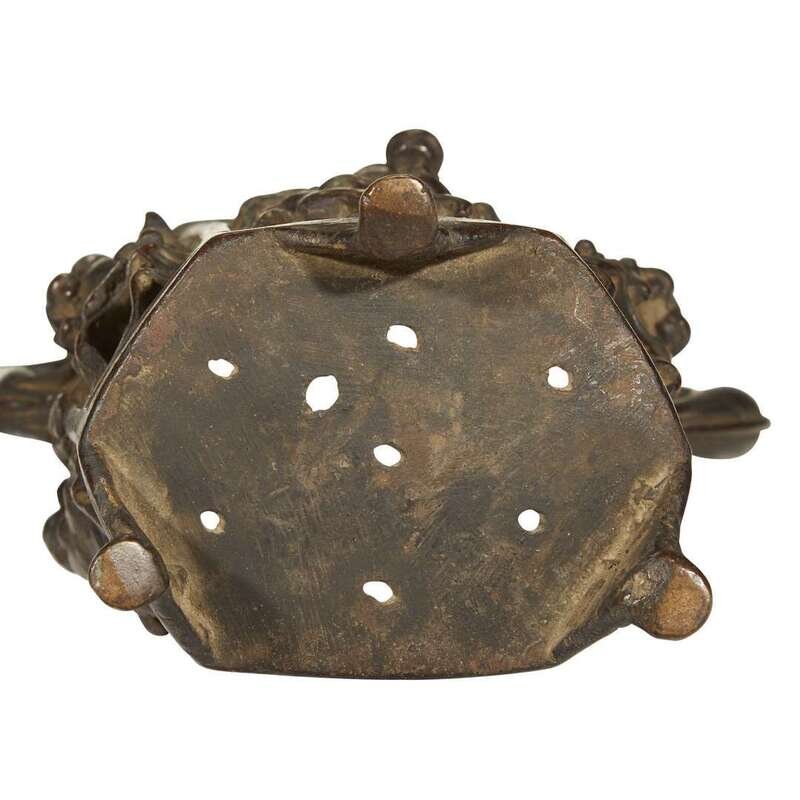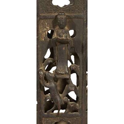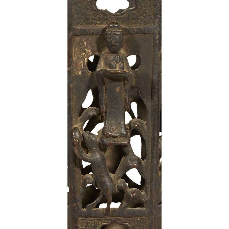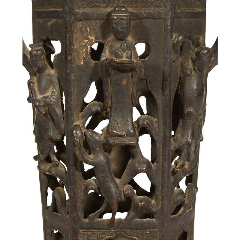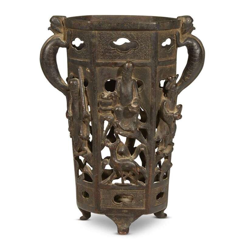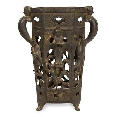 A Chinese bronze pierced brush stand, immortals ming dynasty