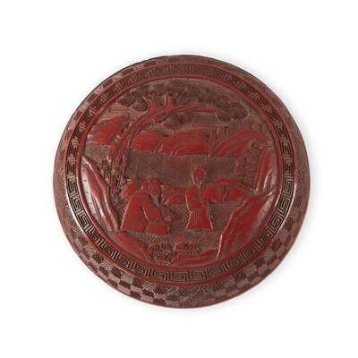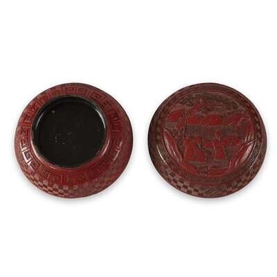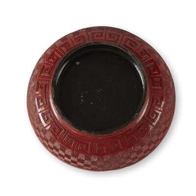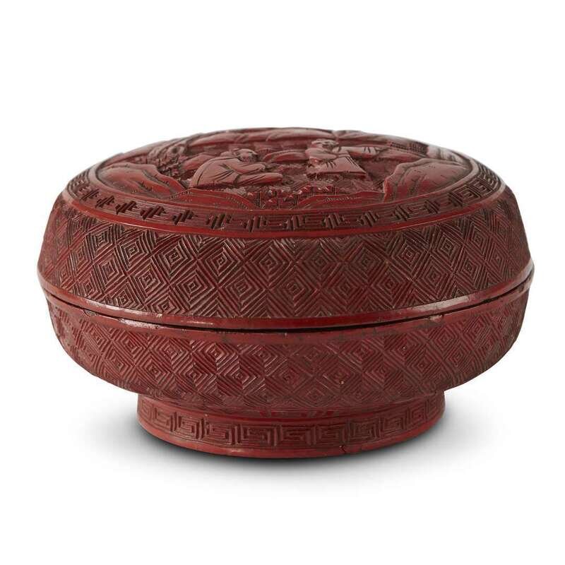 A small Chinese cinnabar lacquer circular box and cover late qing dynasty