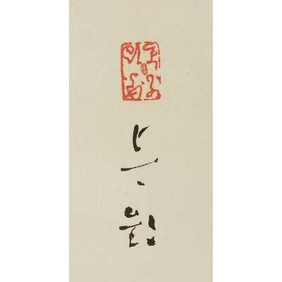 Printed ink and color on paper. Mounted as a hanging scroll, with box. Image sight: W: 22 in., 55.9 cm; H: 18 1/4 in., 46.4 cm.
