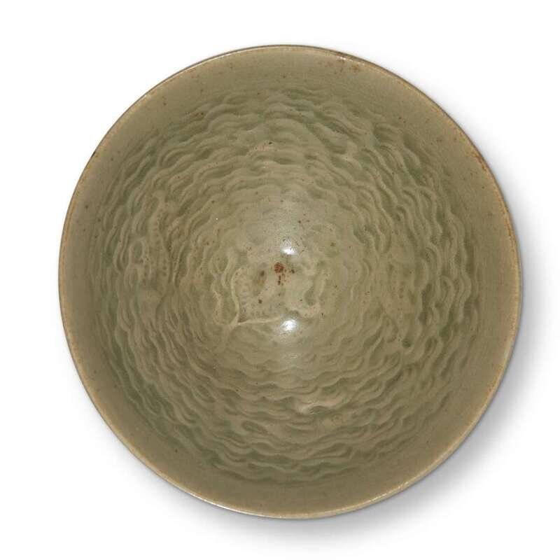 A Chinese molded Yaozhou celadon "fish" small bowl northern song dynasty