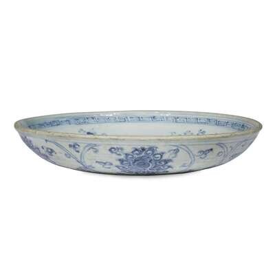 A large Chinese blue and white porcelain "Tashi Xiaoshi" dish ming dynasty