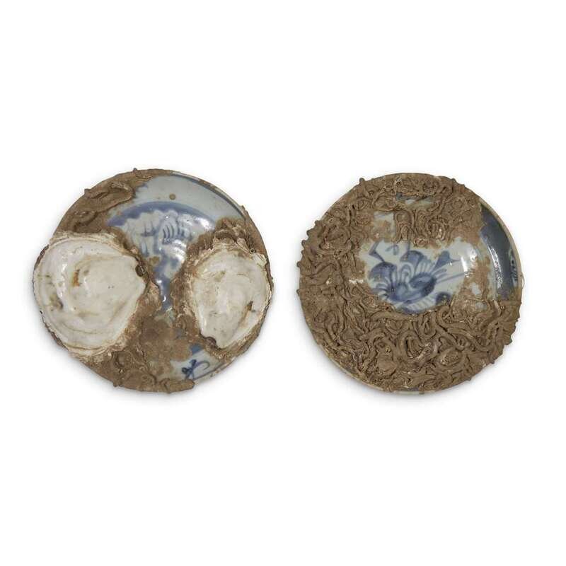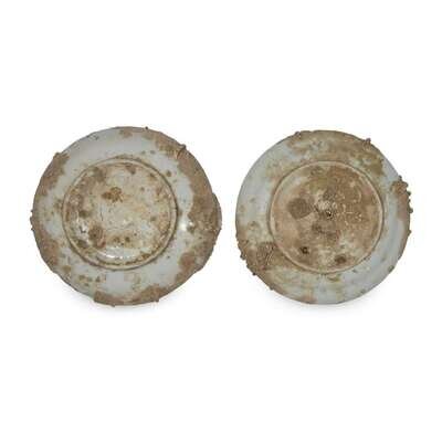 Two Chinese marine-encrusted blue and white porcelain circular dishes the porcelain ming dynasty