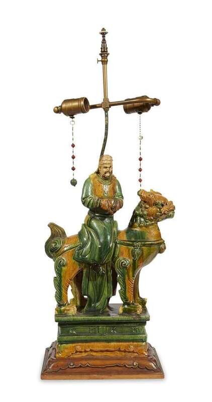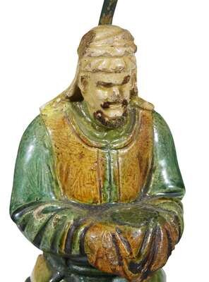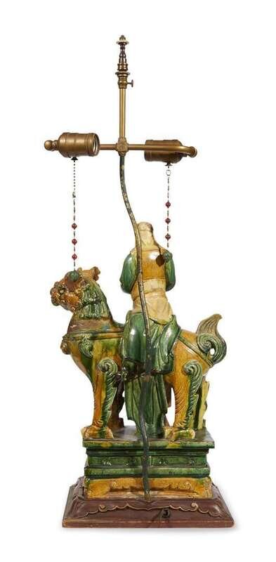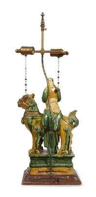 A sancai-glazed pottery figure of a foreign equestrian, mounted as a lamp attributed to E. I. Farmer the figure ming dynasty