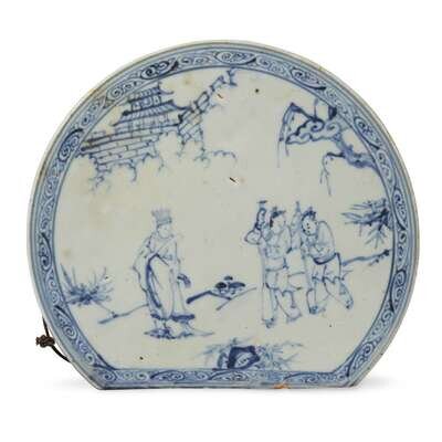 An unusual Chinese blue and white porcelain "figural" plaque ming dynasty