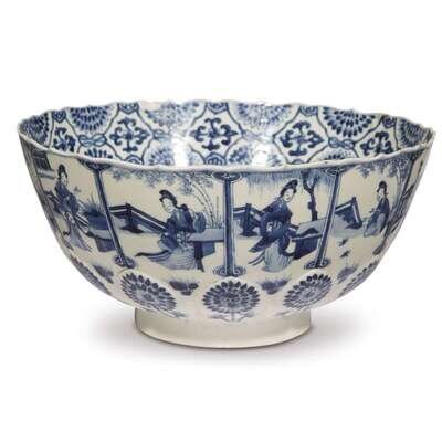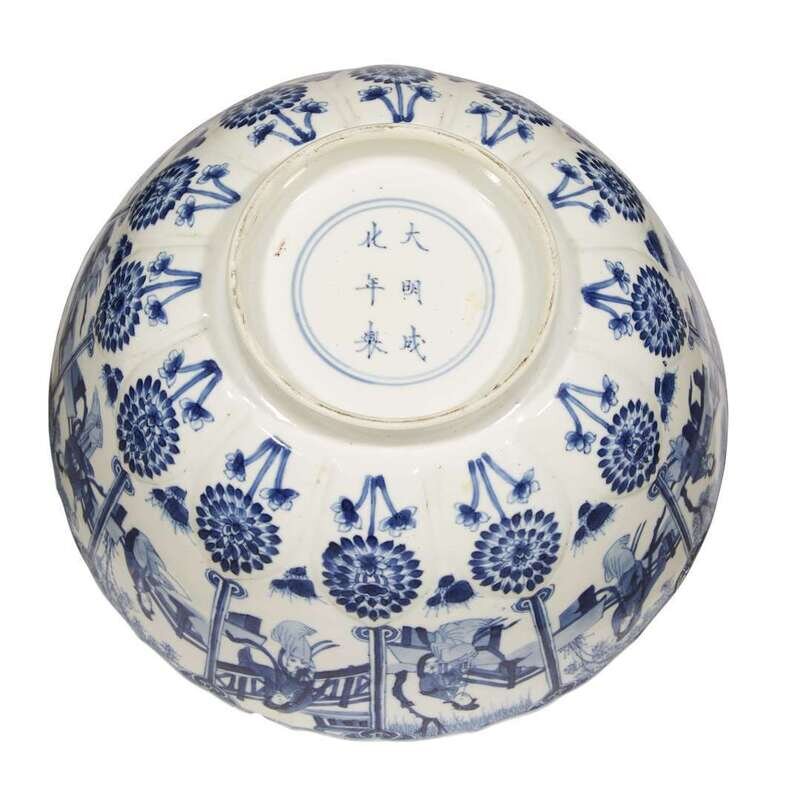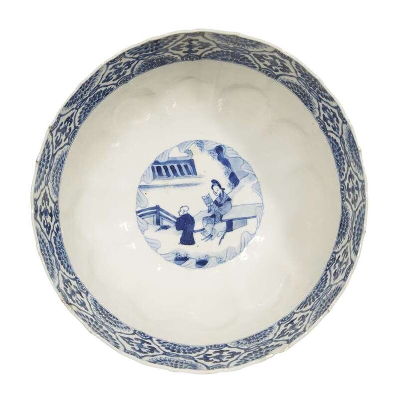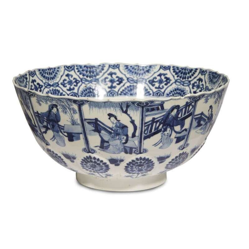 A Chinese blue and white porcelain lobed bowl chenghua six-character mark, but kangxi period