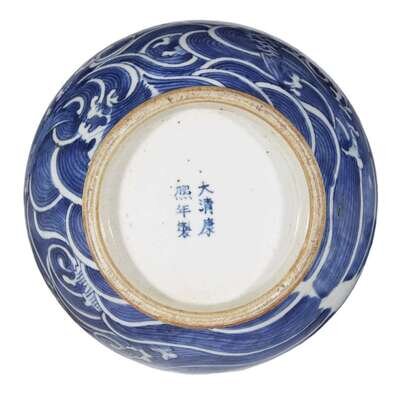 A Chinese blue and white vase kangxi mark but later