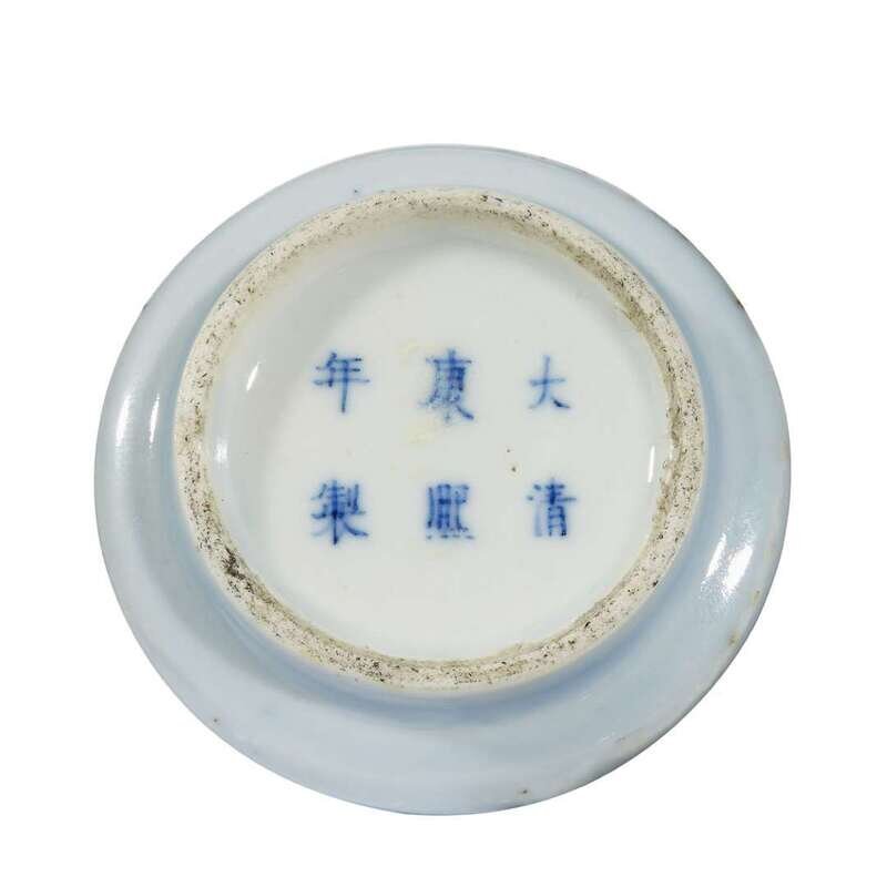 A Chinese pale blue-glazed porcelain conical water coupe Kangxi six-character mark, but probably later