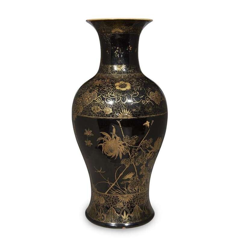 A Chinese gilt-decorated "mirror-black"-glazed baluster vase mid to late qing dynasty