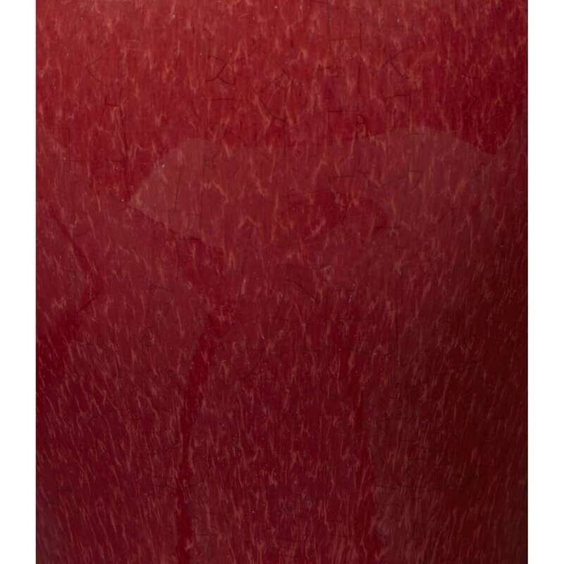 Of a baluster form with rounded shoulders and a short waisted neck flaring at the mouth, the vase covered overall in a red glaze of deep raspberry tone .
