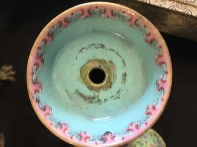 A pair of Chinese famille rose-decorated candlesticks six-character daoguang mark and possibly of the period