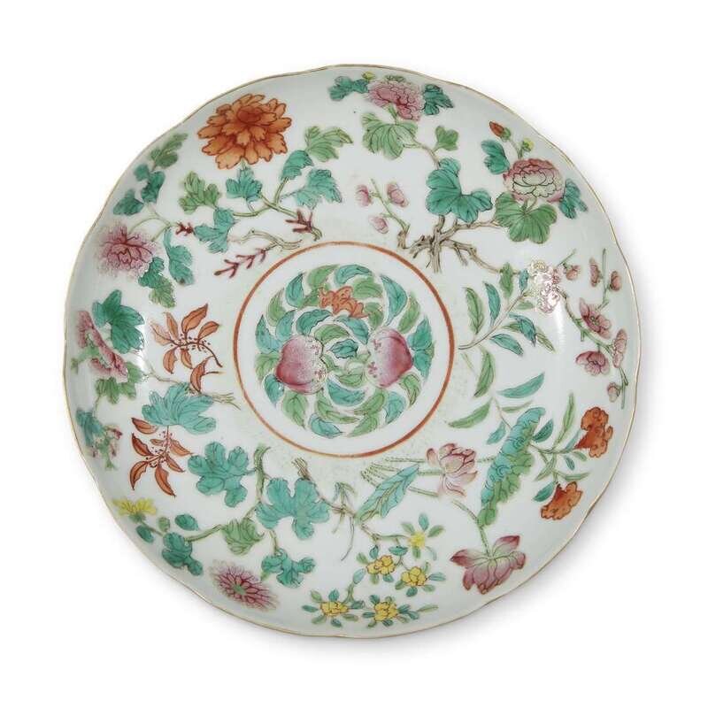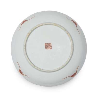 A Chinese famille rose-decorated "Peaches, Bat and Flowers" dish daoguang six-character seal mark and possibly of the period