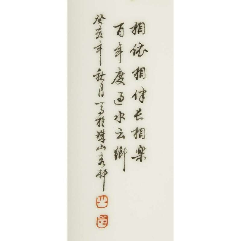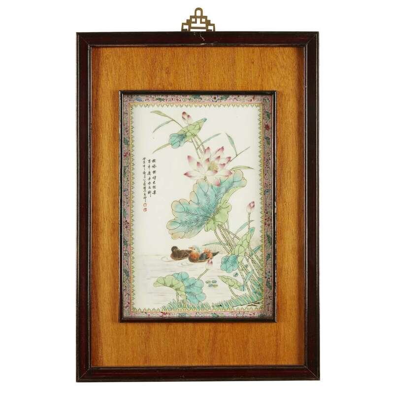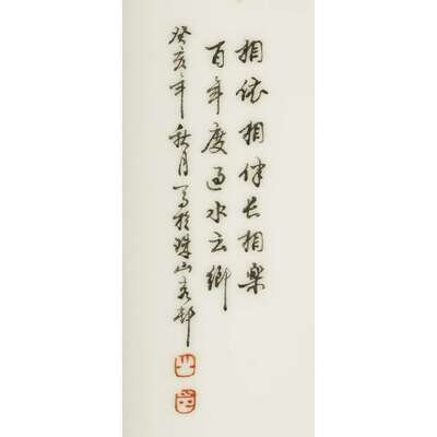 A pair of Chinese famille rose enameled rectangular porcelain plaques dated to a guihai year