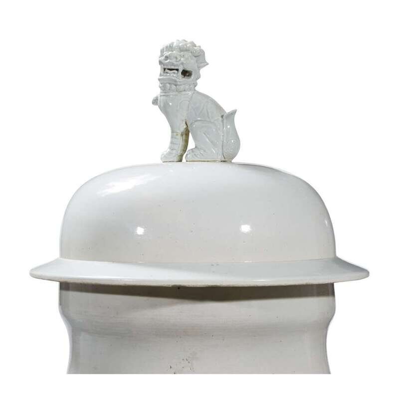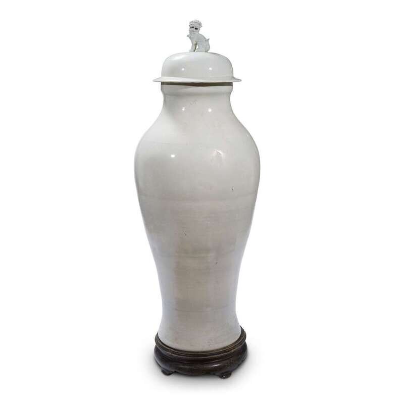 An impressive and massive Chinese monochrome white porcelain "soldier" vase and cover