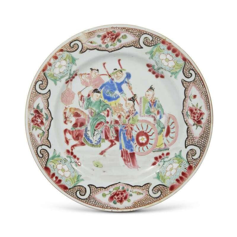 A Chinese export porcelain famille rose-decorated plate circa 1730 - 1750