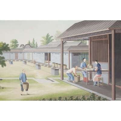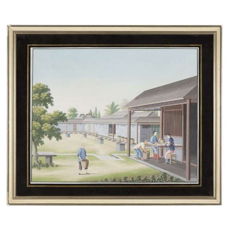 CHINESE SCHOOL LATE 18TH/EARLY 19TH CENTURY SORTING TEA LEAVES IN A COURT YARD