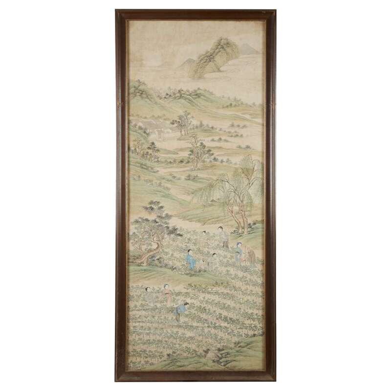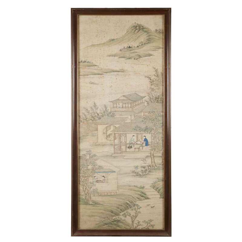 CHINESE SCHOOL QING DYNASTY, 19TH CENTURY FIGURES AT VARIOUS OCCUPATIONS IN A LANDSCAPE, A SET OF FOUR PAINTINGS