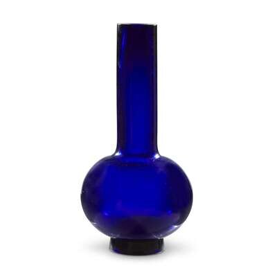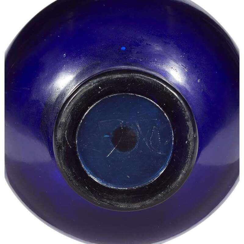Of rich sapphire-blue tone, the vase with a globular body, vertical neck on a short slightly flared foot.