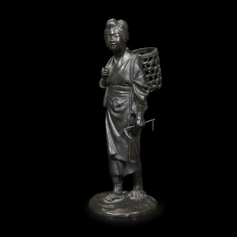 A Japanese patinated bronze figure of a young woman tokyo school, late 19th/20th century