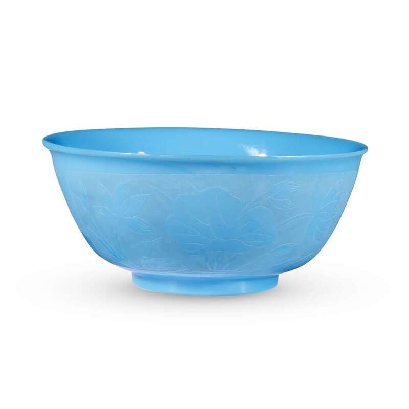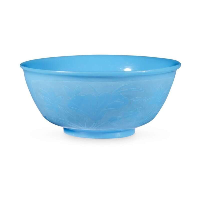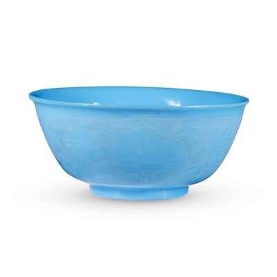 A Chinese engraved turquoise glass bowl