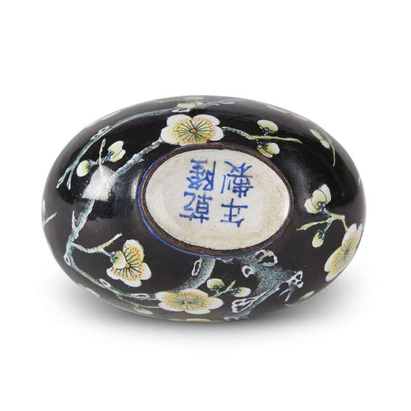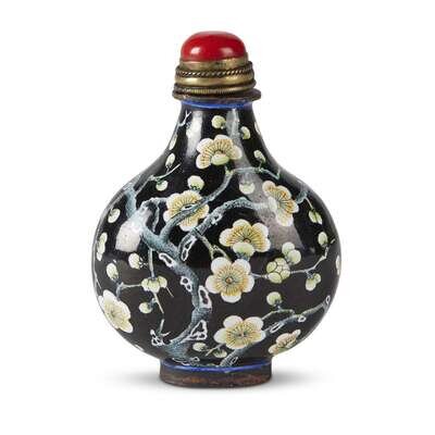 A Chinese enameled copper "Prunus" snuff bottle qianlong four-character mark