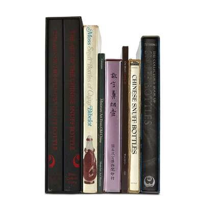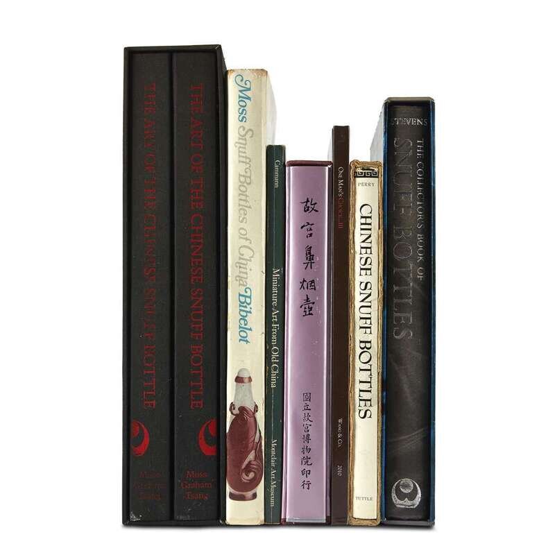 -Hugh Moss et al., "The Art of the Chinese Snuff Bottle, the J & J Collection"first edition, New York and Tokyo, 1993, two volumes with slipcase; Hugh Moss, "Snuff Bottles of China", London 1971; "Snuff Bottles in the Collection of the National Palace Museum", Taipei 1991, with slipcase; Lilla S. Perry, "Chinese Snuff Bottles...", Rutland, First Printing, 1960, with slipcase, inscribed by the author; Ning Wang, "One Man's Choice...III", 2010; Bob Stevens, "The Collector's Book of Snuff Bottles", First Edition, New York, 1976, inscribed by the author to "Bud" Swain, slipcover; Schuler V.R. Cammann, "Miniature Art from Old China", Freehold, 1982.