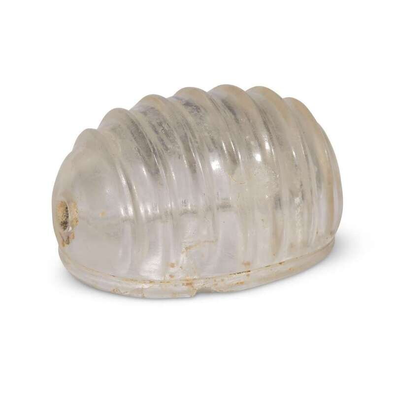Of oval, domed seven-ridge form, pierced at both ends for a hairpin.