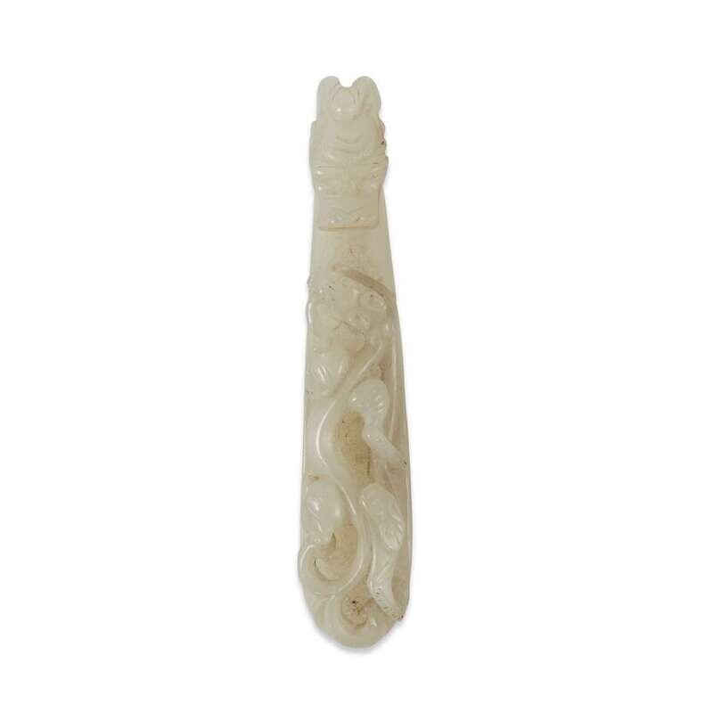 A well-carved white jade "Dragon" belt hook