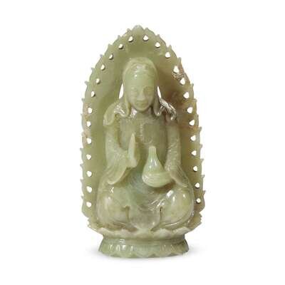 A Chinese celadon jade figure of Guanyin seated