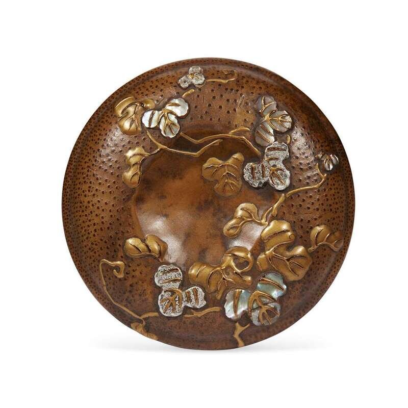 Of rounded form, the kogo decorated in mother-of-pearl, gold hiramaki-e with branches of leaves; bottom inscribed with Ogata Korin and seal.