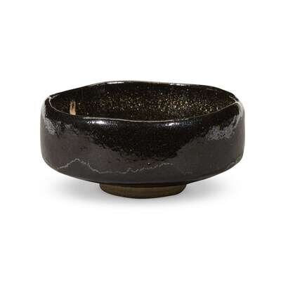 A Japanese Raku-type black-glazed pottery tea bowl